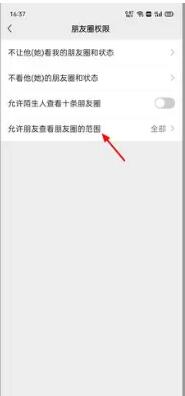 4、在好友权限页面,点击【允许好友查看朋友圈范围】,进入新页面;