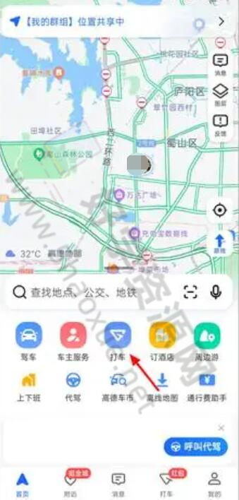 1.首先打开高德地图App,点击打车选项,如图。