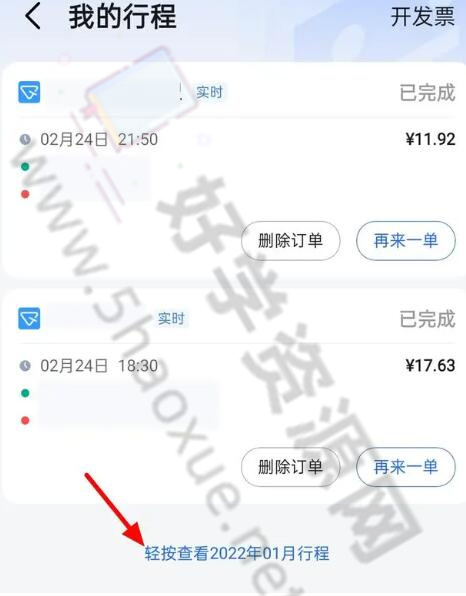 5. 最后,如果找不到要删除的出租车记录,请点击查看行程查找并删除出租车记录。