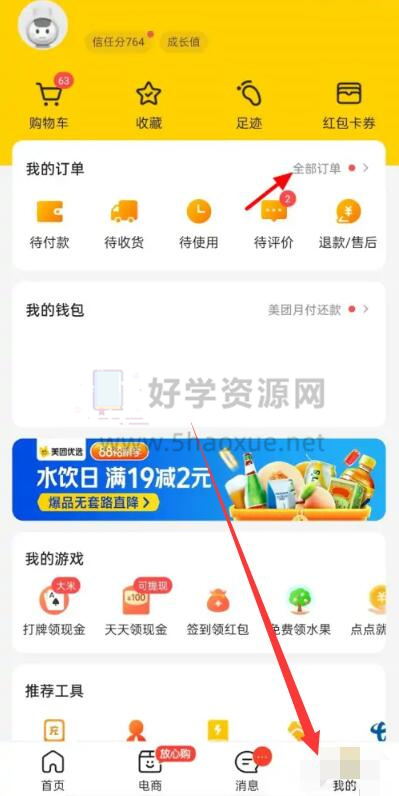 1.首先打开美团,点击右下角我的,然后点击所有订单。