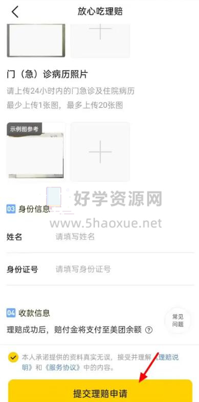4.最后,输入您的相关信息,点击提交理赔申请即可完成美团的理赔申请。