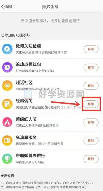 4、最后我们点击确认移除,关闭微博频繁访问。