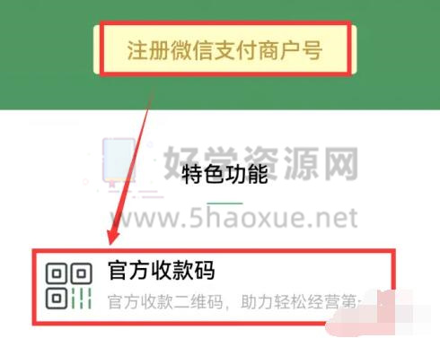 4.最后点击注册微信支付商户账号,然后点击官方支付码进行申请。