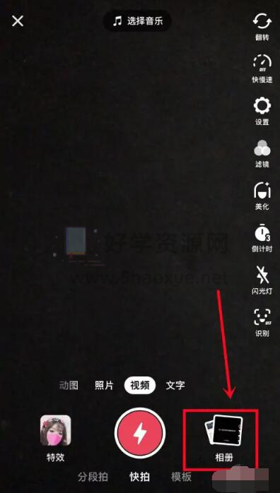 2、然后进入拍摄界面,点击右下角的相册选项。
