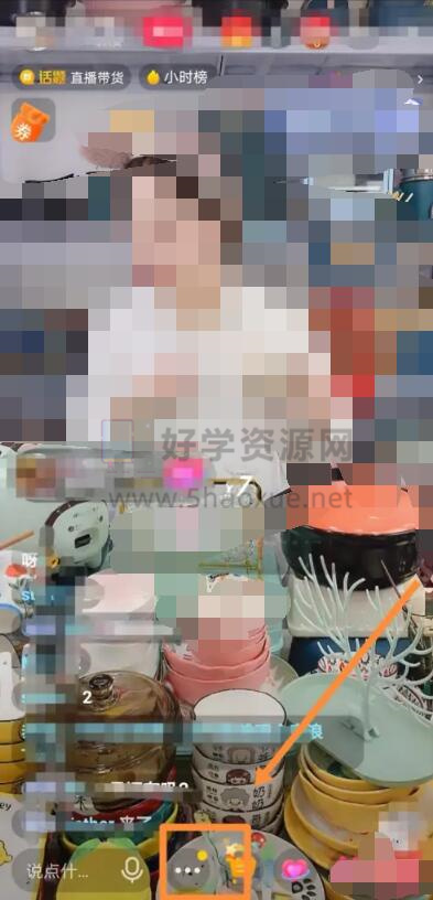 2、然后进入抖音直播间,点击左下角的三点图标,如图。