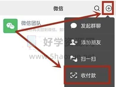 1.首先打开微信,点击右上角的+号,然后点击支付选项。