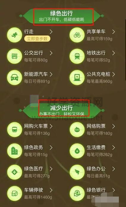 支付宝蚂蚁森林能量对照表