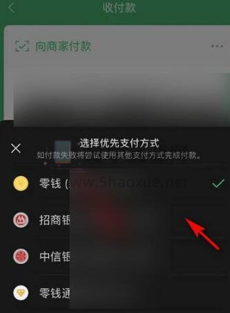 3.然后点击选择您要先使用的支付方式,即可完成微信扫码扣款顺序设置。