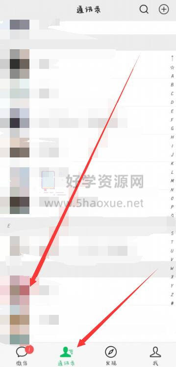 1.首先打开微信,点击底部的通讯录选项,然后点击想要删除的微信好友。