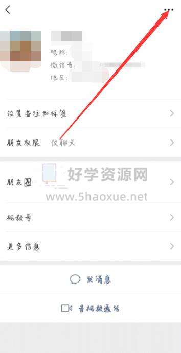 2.然后在好友的个人界面中,点击右上角的三点选项。