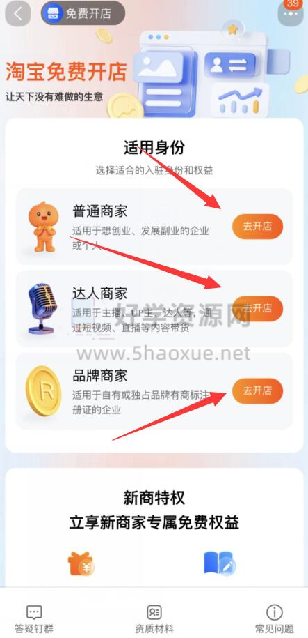 3、然后我们点击淘宝开店。
