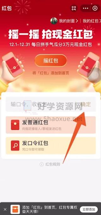 4、最后我们输入红包密码,点击确定即可领取支付宝密码红包。