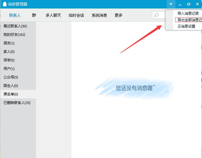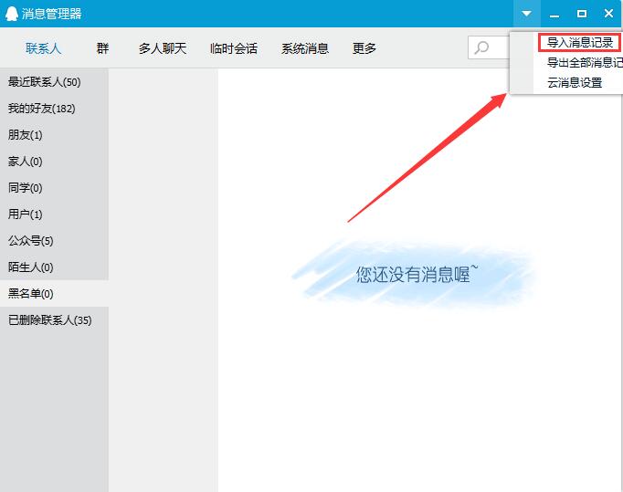 2、如果没有自动导入,我们还是打开消息记录。然后使用自动搜索、和从指定文件导入