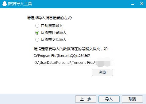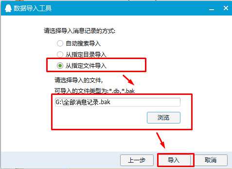然后选择从指定文件导入,然后浏览之前的备份消息记录.bat文件