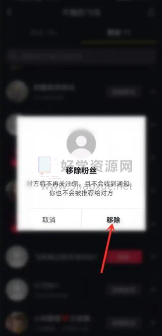 4.最后,我们点击删除,删除在抖音上关注我们的人。