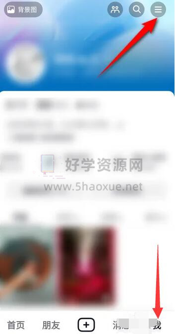 1、首先打开抖音,点击右下角的我,然后点击右上角的三个横排图标。
