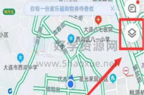 1、首先打开高德地图,点击右上角的开关图标,如图。