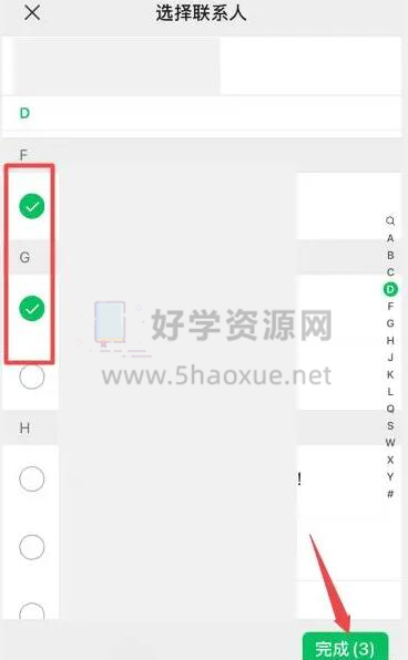 3.最后点击选择需要邀请加入群聊的好友,点击完成即可创建微信群。