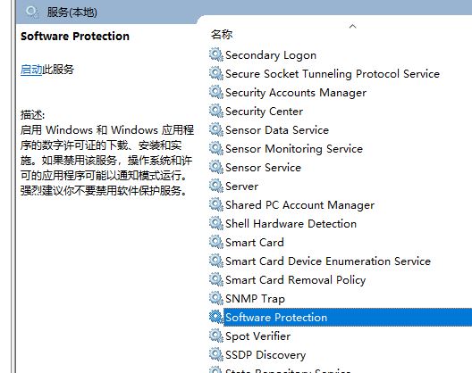 2、打开后找到Software Protection服务,查看是否正常运行。