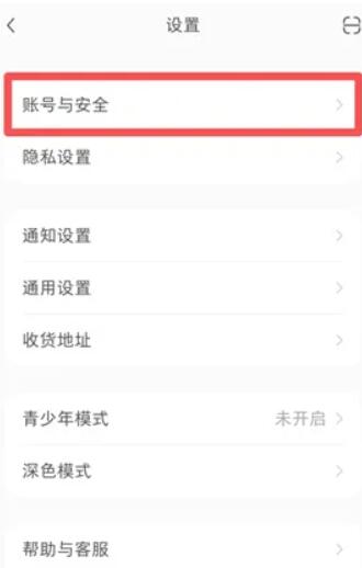 第三步:进入设置页面,点击【账户与安全】进入;