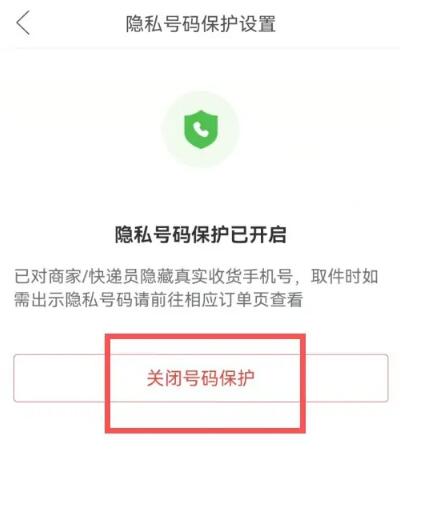 第四步:进入如下图页面,点击【关闭号码保护】边框;