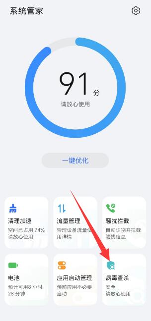 第二步:进入最新页面,点击【病毒扫描】选项;