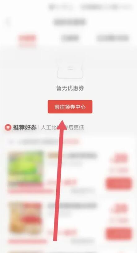 第三步:在优惠券页面,选择【前往优惠券领取中心】,点击红色边框;