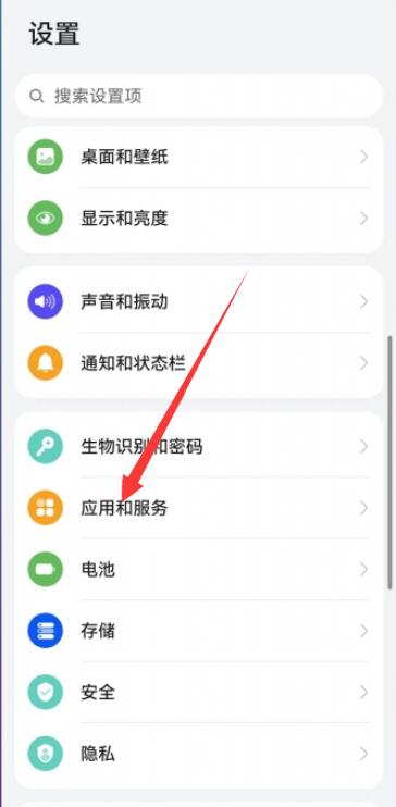 第一步:打开【设置】功能,在页面中选择【应用和服务】并点击;