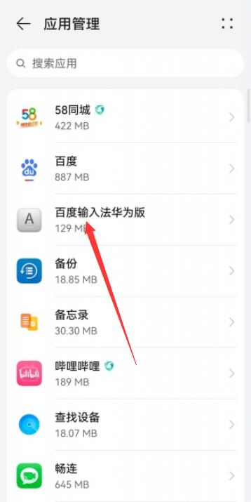 第三步:在最新的应用管理页面选择【百度输入法华为版】;