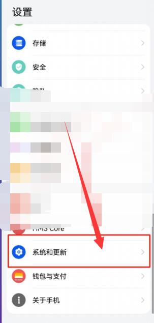 第一步:打开华为【设置】功能,点击页面中的【系统和更新】,选择进入;