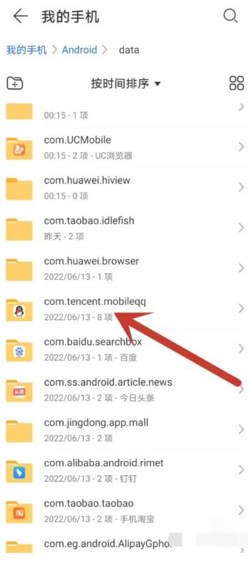 第五步:在界面中选择【com.tencent.mobileqq】文件夹;