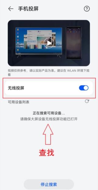 2、第二步:进入手机投屏页面,找到【无线投屏】,滑动后面的按钮。