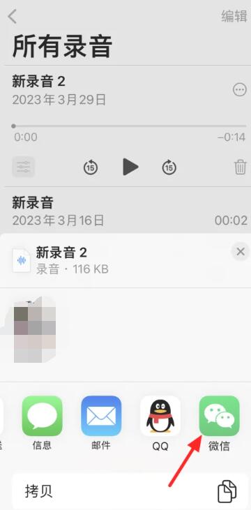 苹果备忘录如何录音发送给好友