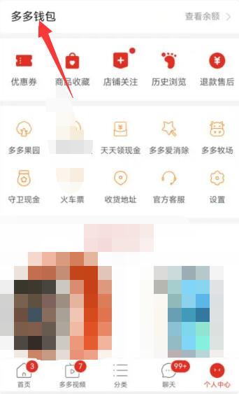 第二步:在个人中心点击如下图所示的【多多钱包】边框;