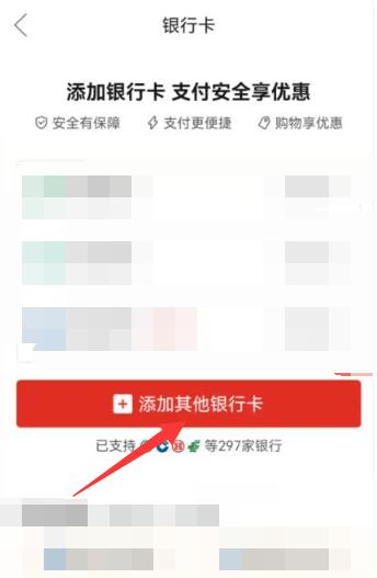 第四步:点击银行卡界面红色按钮【添加其他银行卡】进行设置。