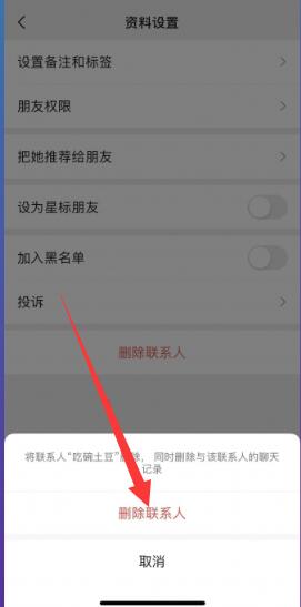 第五步:下面会弹出一个小窗口,选择【删除联系人】功能。