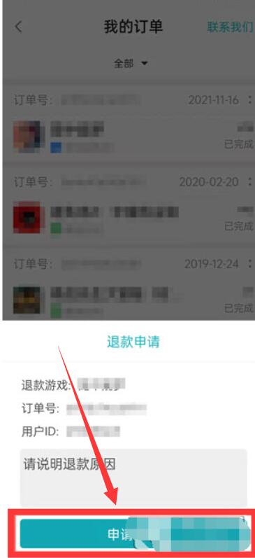 3、第三步:进入我的订单页面,选择需要退款的游戏;