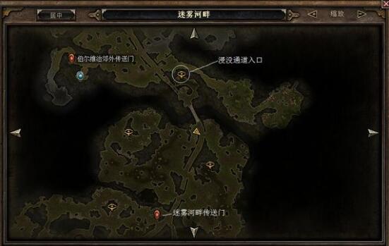 过了迷雾河,继续向北,有一座残破的木桥。桥右侧下方的小溪入口进入水下通道。