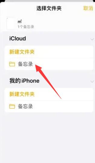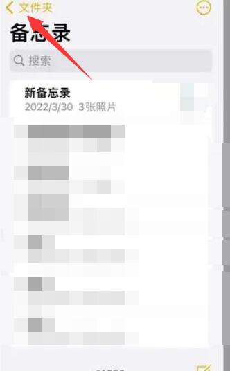 2、第二步:点击备忘录主页面左上角的【文件夹】;