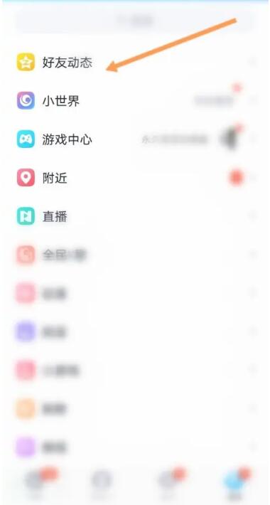 1、第一步:打开QQ应用,点击主页面下方的动态,点击好友动态功能;