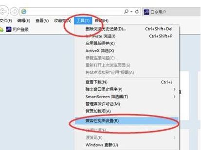 4、在显示出的菜单栏中,单击工具菜单,菜单中选择 兼容性视图设置。之后也会打开兼容性视图设置窗口。