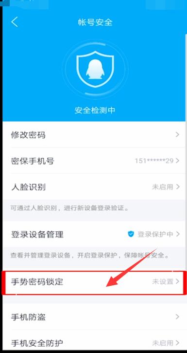 4、然后进入账户安全页面,点击【手势密码锁定】选项;