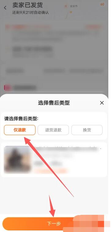 3.然后会弹出一个小窗口,找到【仅退款】功能并点击;