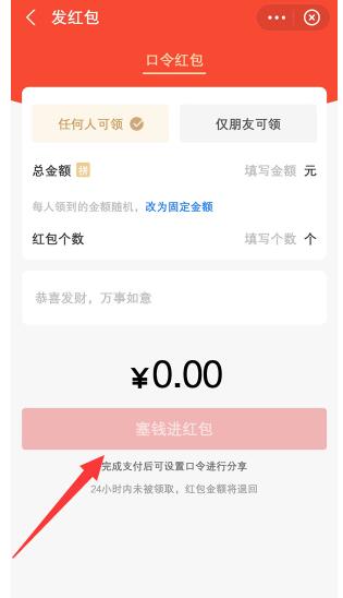3.最后输入您要发送的红包备注和金额,点击【将钱放入红包】即可完成。