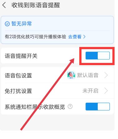 5、最后在跳转到的最新页面,找到【语音提醒开关】后面的按钮,将其关闭和打开。
