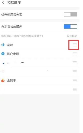 支付宝付款顺序怎么调整