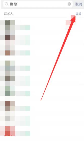 3、然后会显示很多好友,点击【管理】功能如下图箭头所示;