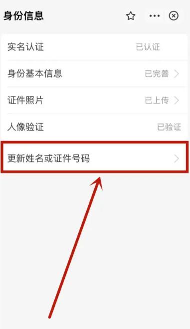 4、然后在身份信息界面,点击【更新姓名或身份证号码】进行选择;