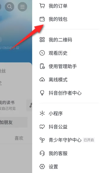 3、然后进入我的钱包界面,点击箭头【抖音商城】功能,如下图所示;