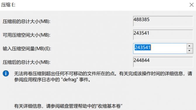 3、在想要把多余空间重新分配的分区上用鼠标右键选择“压缩卷”,稍等一会Windows就会告诉大家哪些空间(最大值)可以供我们拆分出去,如下图所示: